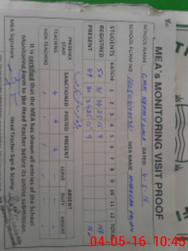| Attendance Register | Head Teacher | MEA with School | Visit Proof |