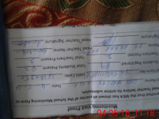 | Attendance Register | Head Teacher | MEA with School | Visit Proof |