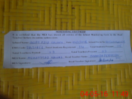 | EMIS Code: 38420656 | Name of School: GGPS AZIZ COLONY | |||