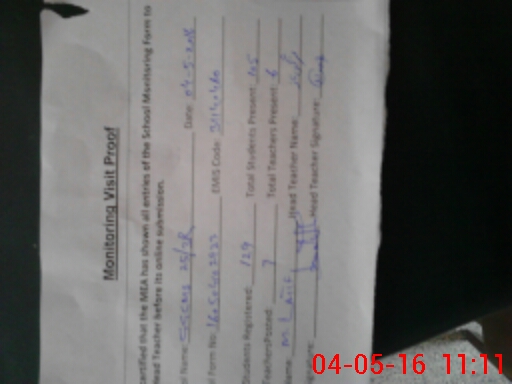 | Attendance Register | Head Teacher | MEA with School | Visit Proof |