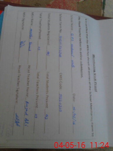 | Certified that this School was Inspected by the Undersigned MEA/DMO Today and the Information Stated Above is as Per Record. | |||||