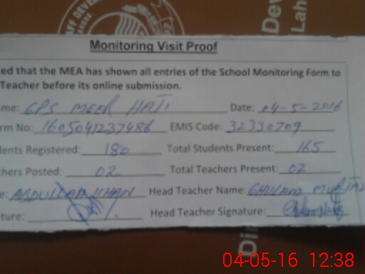 | Certified that this School was Inspected by the Undersigned MEA/DMO Today and the Information Stated Above is as Per Record. | |||||