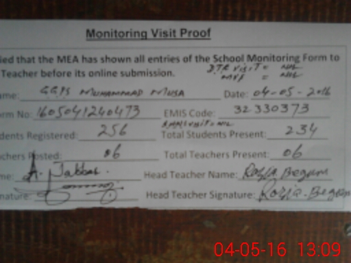 | EMIS Code: 32330373 | Name of School: GGES MUHAMMAD MUSA | |||