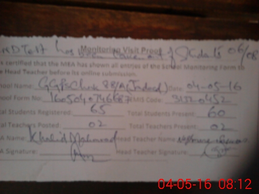 | EMIS Code: 31320452 | Name of School: GGPS CHAK NO. 88/A JADEED | |||