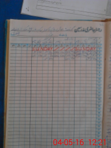 | CNIC | Full Name | Designation | R/C | Absence During Last Calender Month |
