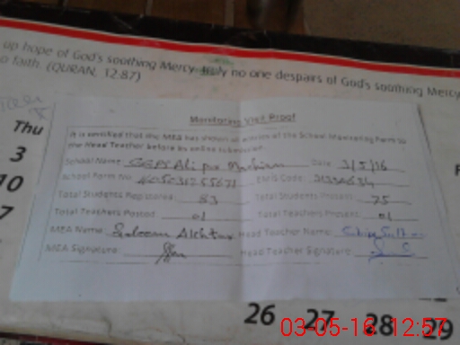 | Attendance Register | Head Teacher | MEA with School | Visit Proof |