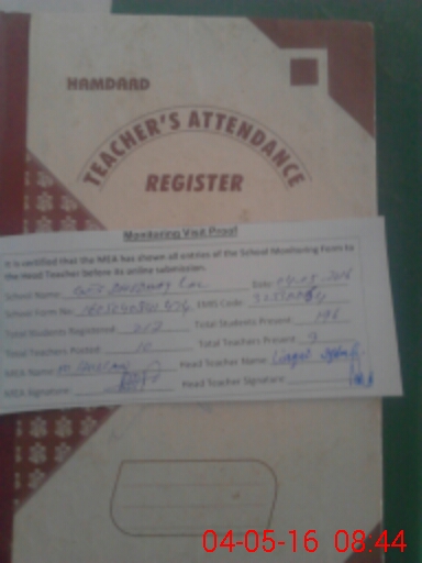 | Attendance Register | Head Teacher | MEA with School | Visit Proof |
