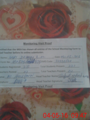 | Certified that this School was Inspected by the Undersigned MEA/DMO Today and the Information Stated Above is as Per Record. | |||||