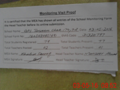 | EMIS Code: 31320797 | Name of School: GPS TANZEEM CHAK NO. 174/7-R | |||