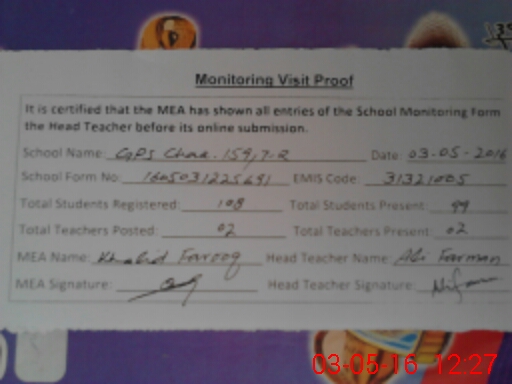 | EMIS Code: 31321005 | Name of School: GES CHAK NO.159/7-R | |||