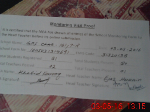 | Attendance Register | Head Teacher | MEA with School | Visit Proof |