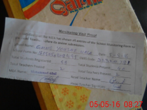 | Attendance Register | Head Teacher | MEA with School | Visit Proof |