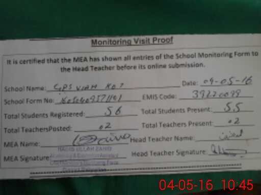 | Attendance Register | Head Teacher | MEA with School | Visit Proof |