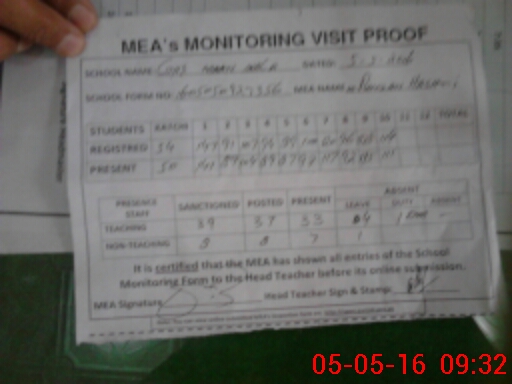 | Attendance Register | Head Teacher | MEA with School | Visit Proof |