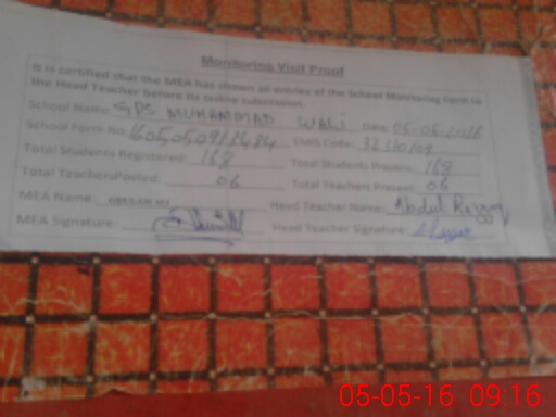 | EMIS Code: 32310109 | Name of School: GPS MUHAMMAD WALI | |||