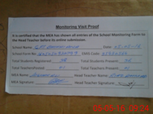 | Certified that this School was Inspected by the Undersigned MEA/DMO Today and the Information Stated Above is as Per Record. | |||||