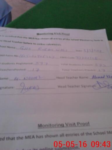 | Attendance Register | Head Teacher | MEA with School | Visit Proof |