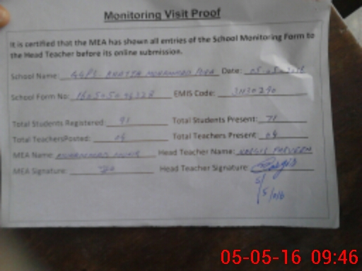 | Certified that this School was Inspected by the Undersigned MEA/DMO Today and the Information Stated Above is as Per Record. | |||||