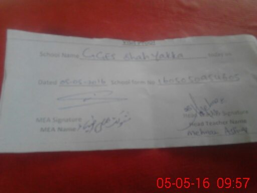 | Name: MA**** SH**** Designation: (School Headmaster's/Headmistress's) SSE Eng Phone/Cell Number: 03**** |