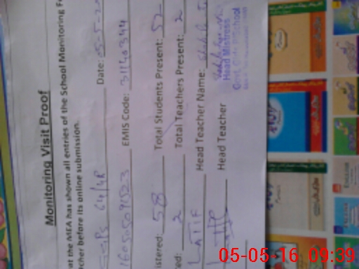 | Attendance Register | Head Teacher | MEA with School | Visit Proof |