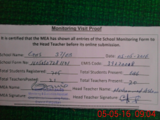 | Certified that this School was Inspected by the Undersigned MEA/DMO Today and the Information Stated Above is as Per Record. | |||||