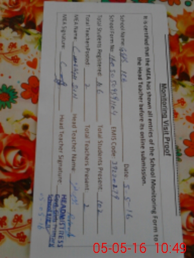 | Attendance Register | Head Teacher | MEA with School | Visit Proof |