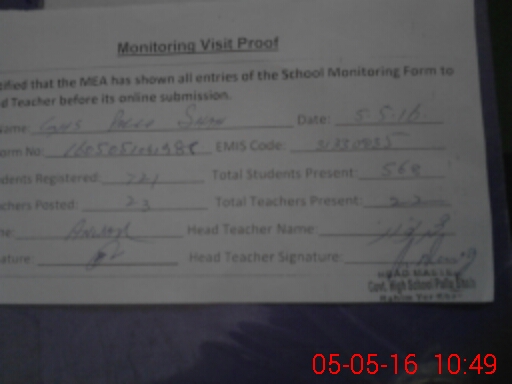 | EMIS Code: 31330035 | Name of School: GHS PULLO SHAH | |||