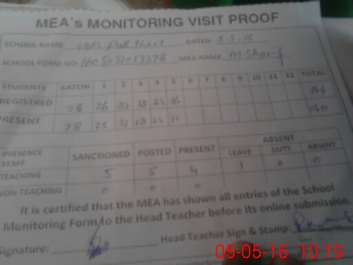 | EMIS Code: 36430381 | Name of School: GGPS PULL GHARAT, TULAMBA | |||