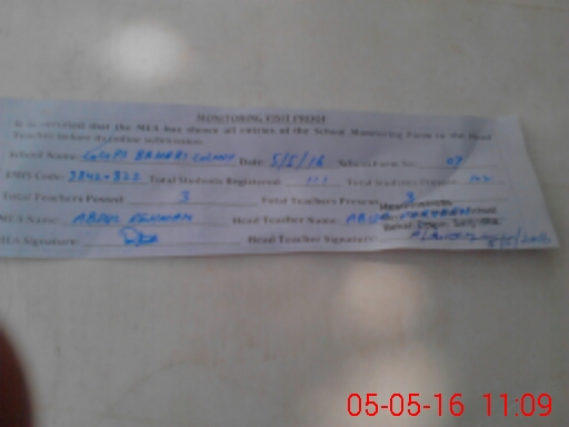 | Attendance Register | Head Teacher | MEA with School | Visit Proof |