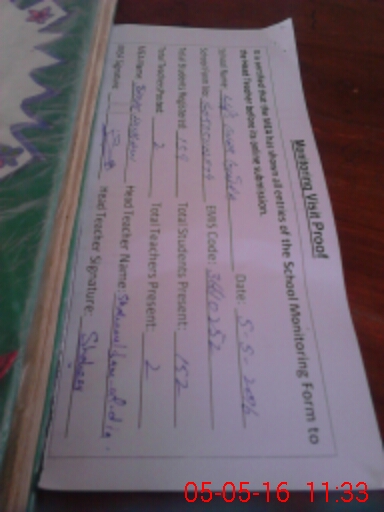 | Attendance Register | Head Teacher | MEA with School | Visit Proof |