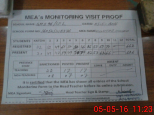 | Attendance Register | Head Teacher | MEA with School | Visit Proof |