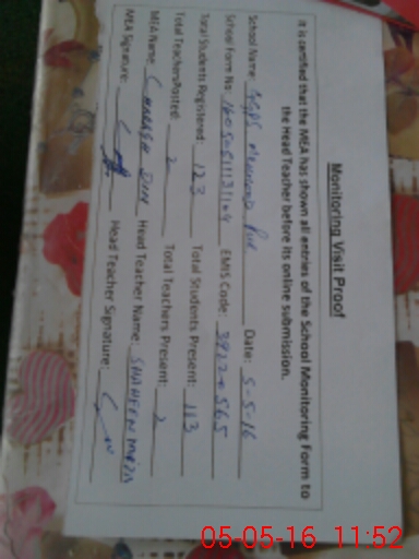 | Certified that this School was Inspected by the Undersigned MEA/DMO Today and the Information Stated Above is as Per Record. | |||||