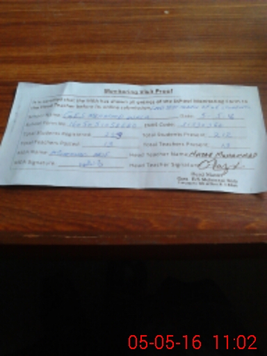| Attendance Register | Head Teacher | MEA with School | Visit Proof |