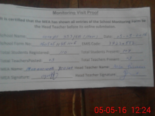 | Certified that this School was Inspected by the Undersigned MEA/DMO Today and the Information Stated Above is as Per Record. | |||||