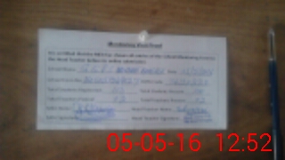 | Monitoring Date: 05-05-2016 | Start Time: 05-05-2016 12:31 PM | End Time: 05-05-2016 12:53 PM | Name of MEA: MU**** AB**** SI**** | |