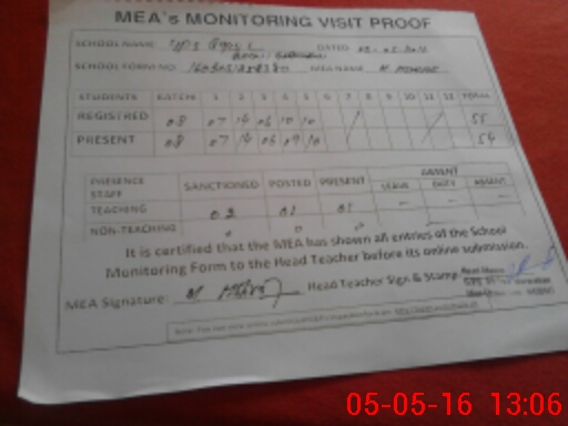 | Attendance Register | Head Teacher | MEA with School | Visit Proof |