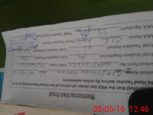 | Attendance Register | Head Teacher | MEA with School | Visit Proof |