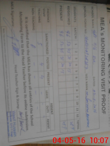 | Certified that this School was Inspected by the Undersigned MEA/DMO Today and the Information Stated Above is as Per Record. | |||||