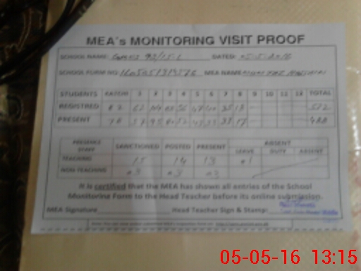| Attendance Register | Head Teacher | MEA with School | Visit Proof |