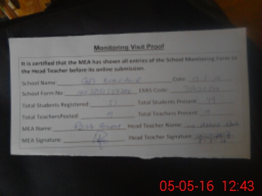 | Certified that this School was Inspected by the Undersigned MEA/DMO Today and the Information Stated Above is as Per Record. | |||||