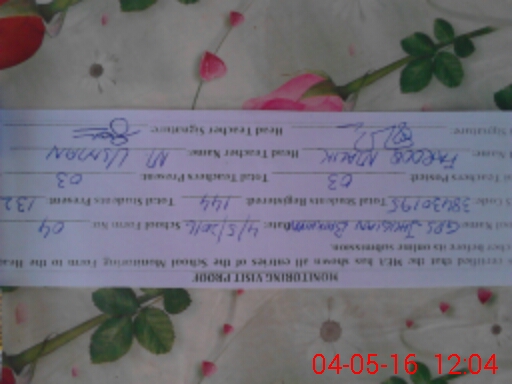 | Attendance Register | Head Teacher | MEA with School | Visit Proof |