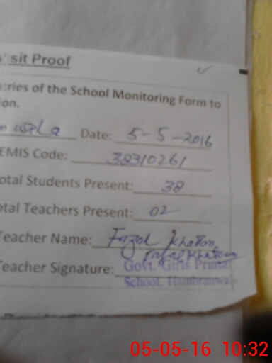 | EMIS Code: 38310261 | Name of School: GGPS HANBRAN WALA | |||