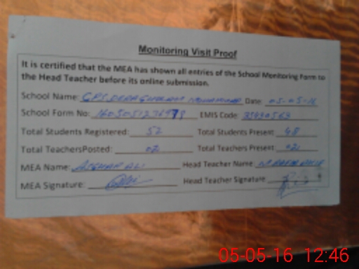 | Certified that this School was Inspected by the Undersigned MEA/DMO Today and the Information Stated Above is as Per Record. | |||||