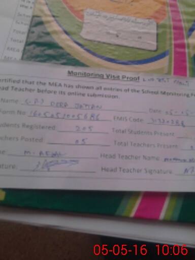 | Certified that this School was Inspected by the Undersigned MEA/DMO Today and the Information Stated Above is as Per Record. | |||||