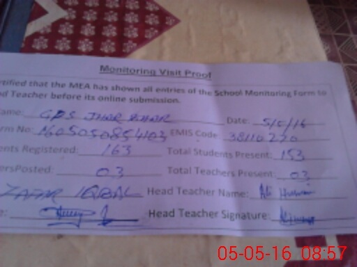| EMIS Code: 38110270 | Name of School: GPS JHAR BHAR | |||