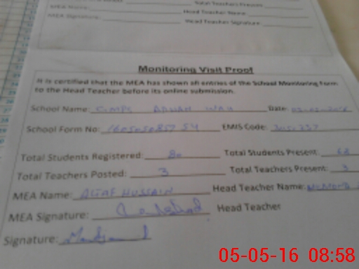 | EMIS Code: 31150237 | Name of School: GMPS ADHAN WAH | |||