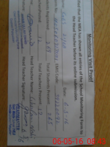 | Certified that this School was Inspected by the Undersigned MEA/DMO Today and the Information Stated Above is as Per Record. | |||||