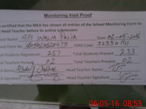 | EMIS Code: 32330141 | Name of School: GPS WALIA PALIA | |||