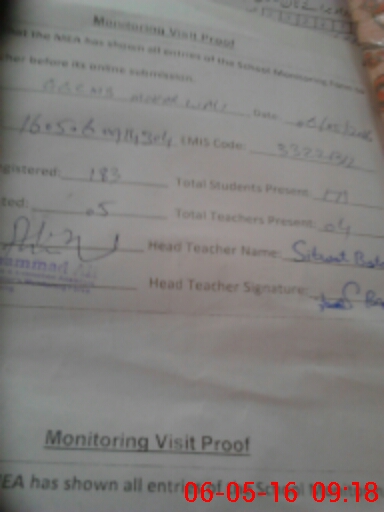 | Attendance Register | Head Teacher | MEA with School | Visit Proof |