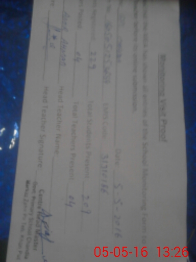 | EMIS Code: 31310186 | Name of School: GPS CHANDIA (After Noon) | |||